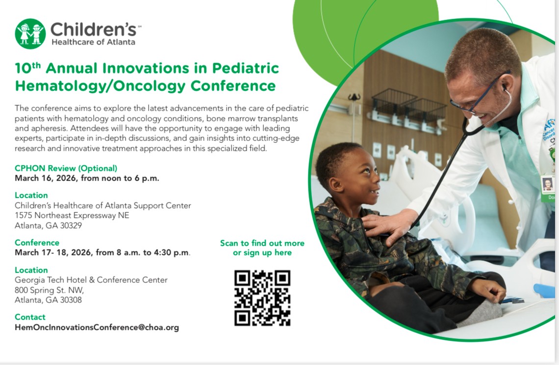 Join Children’s Healthcare of Atlanta for the 10th annual Innovations in Pediatric Hematology/Oncology Conference.